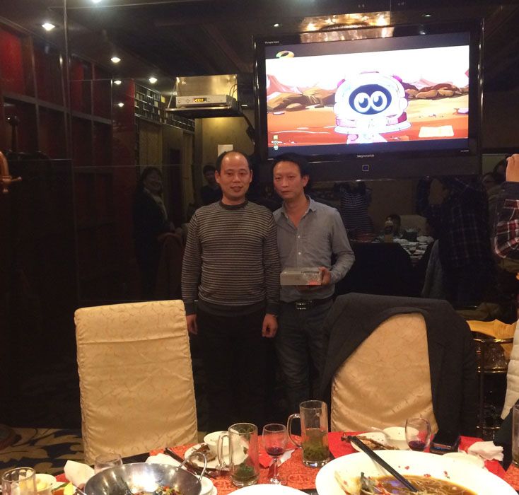 2014年1月25日湖南榮鈞環保科技有限公司在旺府大酒店舉行了隆重而又溫馨的年夜晚會。本公司全體員工都參與了本次晚會。晚會中,領導與員工都針對2013年度工作做了年終總結。晚會中有抽獎環節,公司設置了四項大獎,分別為特等獎、一等獎、二等獎、三等獎。員工通過抽紅包的方式進行抽獎,每個紅包中都有一張寫上獎品的紙條。抽獎完畢后,中獎員工進行了節目表演并發表了獲獎感言。整個晚會過程中,員工的熱情高漲,激情四射!