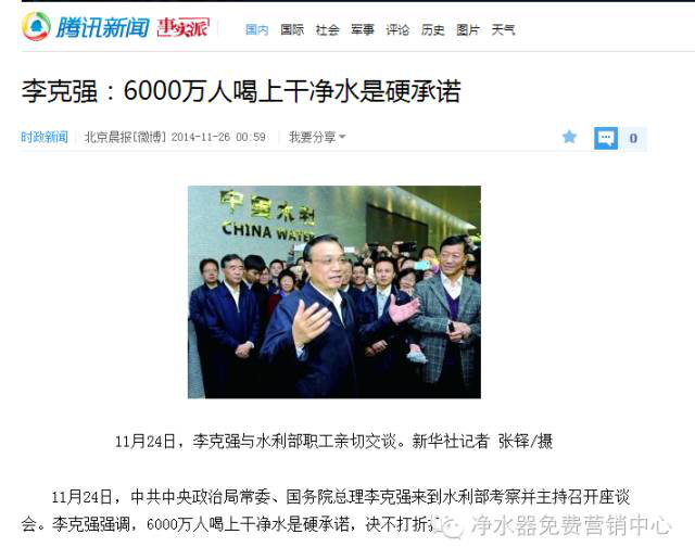 李克強(qiáng)總理要為凈水器代言嗎?